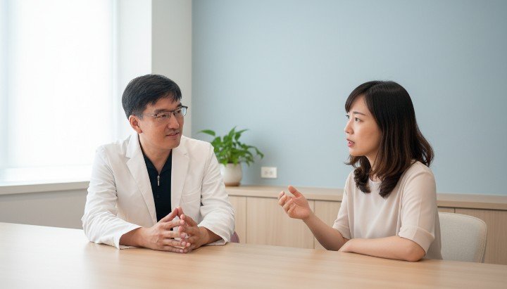 專業醫師在諮詢室講解鳳凰電波麻醉風險。 第四代鳳凰電波儀器操作與麻醉風險關聯圖。 清醒施打鳳凰電波與預防術後不良反應的示意圖。